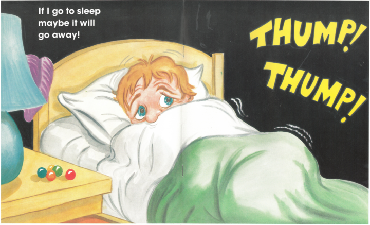As the mysterious THUMP! THUMP! echoes through the dark room, the frightened boy pulls the blanket up to his nose. “If I go to sleep, maybe it will go away!” he whispers, trying to hide from whatever might be lurking beneath his bed.